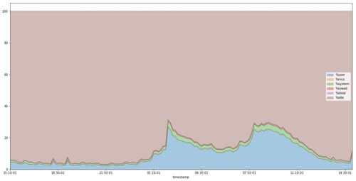 sar をテキストに出力して加工する。 export LANG=C ls *.dat|while read LINE do ARR=(${LINE//_/ }) sar -u -f ${LINE}|perl -slane '/(\d{2}\/\d{2}\/\d{2})/ and $d=$1;if($#F==7 and !/%user/){printf(qq/%s\t%s\t%s\n/,$node,$d,join(qq/\t/,@F))}' --…